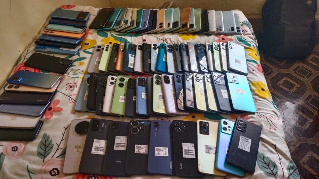 एसएसपी ने बताया कि छापेमारी टीम ने त्वरित काकारर्रवाई करते हुए सूर्या नगर कमड़े स्थित बिट्टू चौधरी के घर पहुंचा, जहां एक कमरे में रह रहे छह लोगों को पकड़ा गया, जिसमे एक नाबालिक भी था। घर के तलाशी के क्रम में इनलोगों के पास से कुल 79 अलग अलग कंपनी के मोबाइल फोन बरामद किया गया।