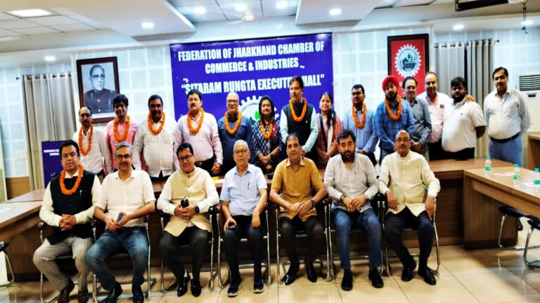 रांची। फेडरेशन ऑफ झारखंड चैंबर ऑफ कॉमर्स एंड इंडस्ट्रीज (FJCCI) के सत्र 2025-26 के लिए नवनिर्वाचित कार्यकारिणी समिति की पहली बैठक मंगलवार को चैंबर भवन में संपन्न हुई। बैठक की अध्यक्षता चुनाव पदाधिकारी बिकास सिंह एवं पवन शर्मा ने की। उन्होंने सभी नवनिर्वाचित सदस्यों को बधाई दी और राज्य के व्यापार, उद्योग और प्रोफेशनल सेक्टर के विकास हेतु समर्पित भाव से कार्य करने की प्रेरणा दी।