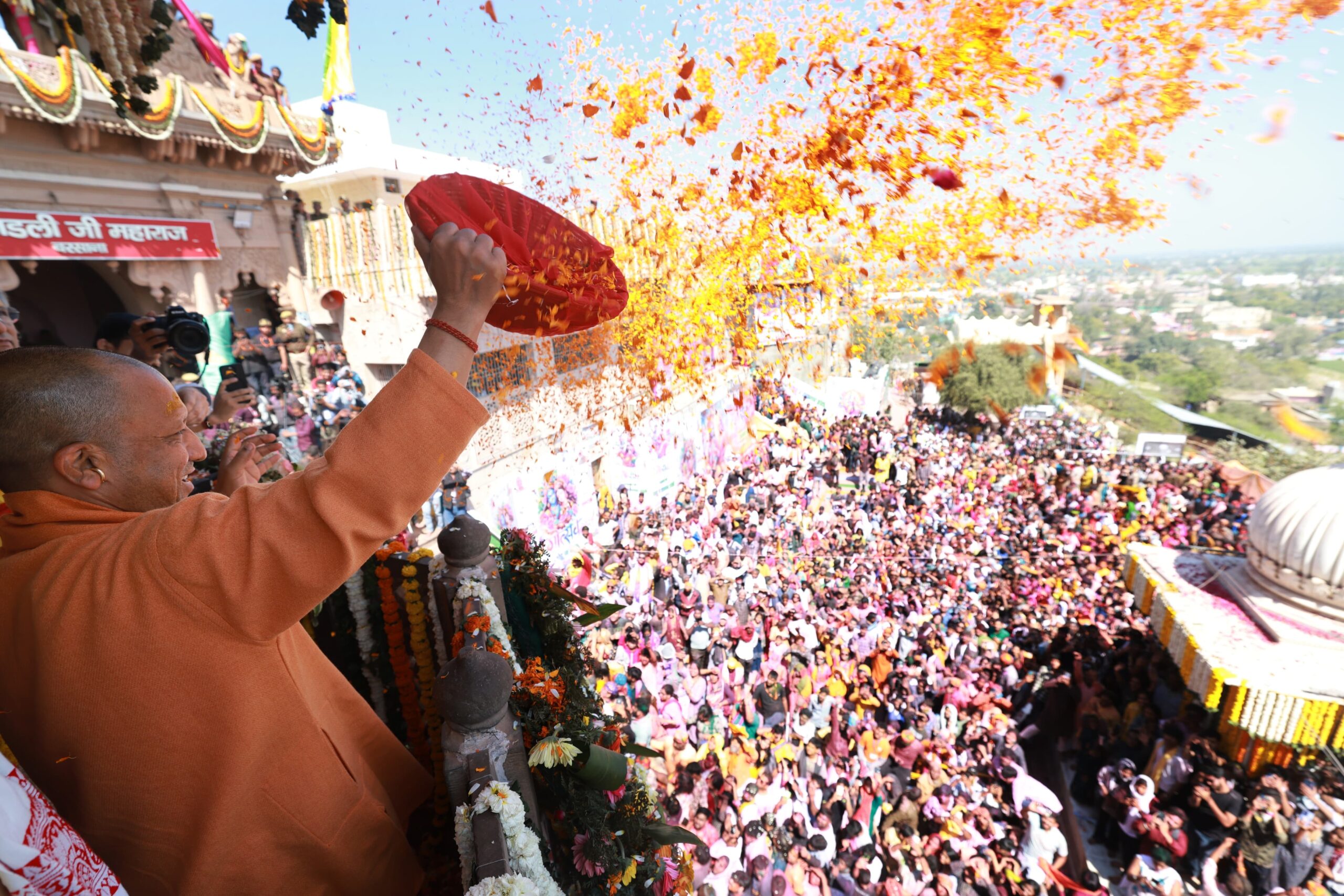 मथुरा। मुख्यमंत्री योगी आदित्यनाथ ने मथुरा जिले के बरसाना में शुक्रवार को ’रंगोत्सव 2025’ का शुभारंभ किया। इस अवसर पर मुख्यमंत्री ने कहा कि काशी और अयोध्या के बाद अब मथुरा और ब्रजभूमि के कायाकल्प का समय आ गया है। उन्होंने कहा कि पांच हजार साल से भारत की सनातन संस्कृति को ऊर्जा देने वाली यह ब्रजभूमि श्रद्धा और आस्था की धरा है। इसके कण-कण में श्रीराधा और श्रीकृष्ण के दर्शन होते हैं।