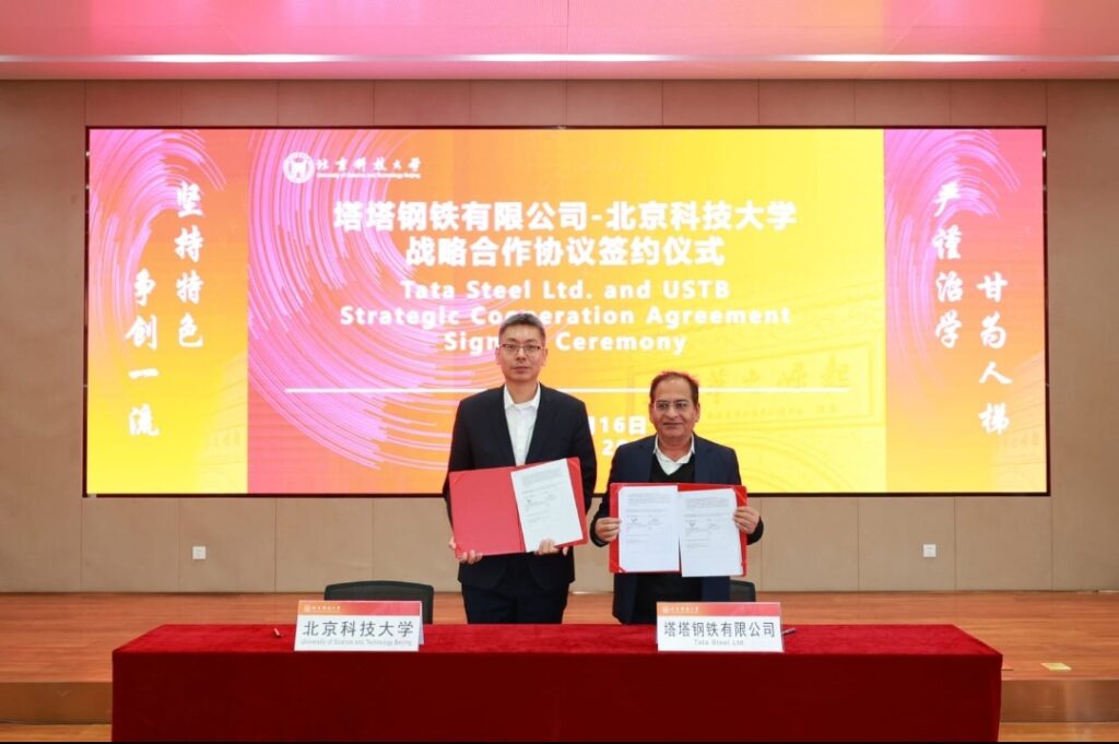 जमशेदपुर। टाटा स्टील ने सतत और पर्यावरण अनुकूल स्टील उत्पादन को बढ़ावा देने के लिए यूनिवर्सिटी आॅफ साइंस एंड टेक्नोलॉजी बीजिंग (यूएसटीबी) के साथ लो-कार्बन स्टील मेकिंग तकनीकों के विकास के लिए समझौता ज्ञापन (एमओयू) पर हस्ताक्षर किए हैं।