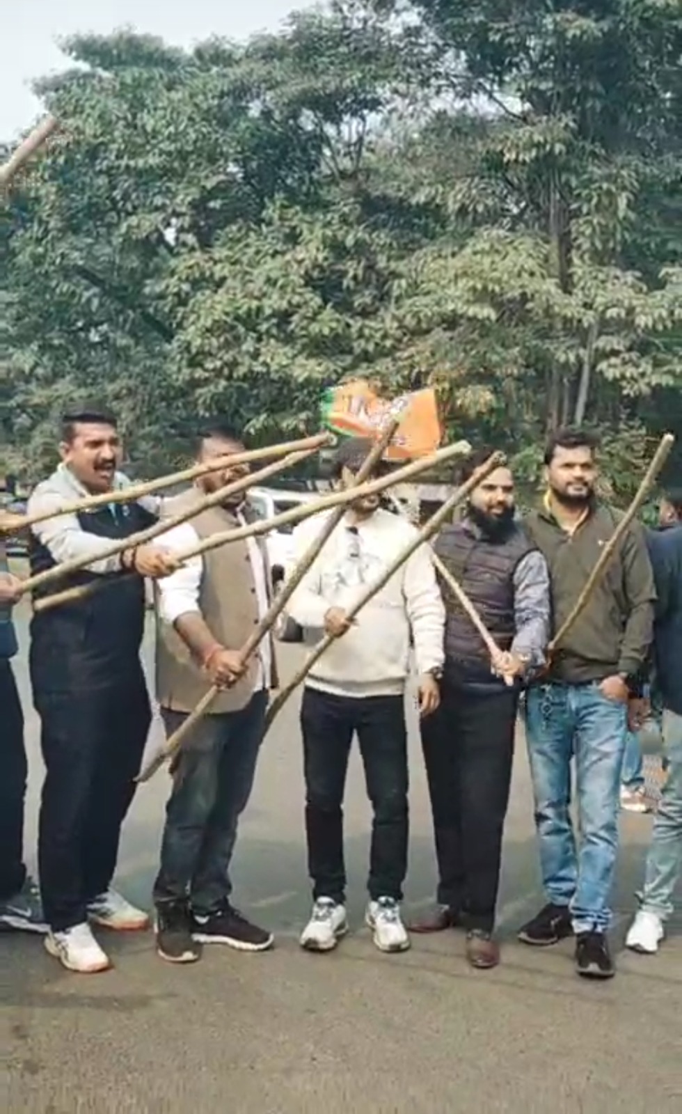 इसी दौरान भाजपा कार्यालय से भाजपा के कार्यकर्ता भी बाहर निकल आए। दोनों पक्षों के कार्यकर्ता लाठी-डंडों से लैस थे। भाजपा कार्यकर्ताओं ने झंडे के साथ आगे बढ़ते हुए कांग्रेस के खिलाफ नारेबाजी शुरू कर दी। देखते ही देखते माहौल तनावपूर्ण हो गया और दोनों दलों के बीच टकराव की स्थिति बन गई।
