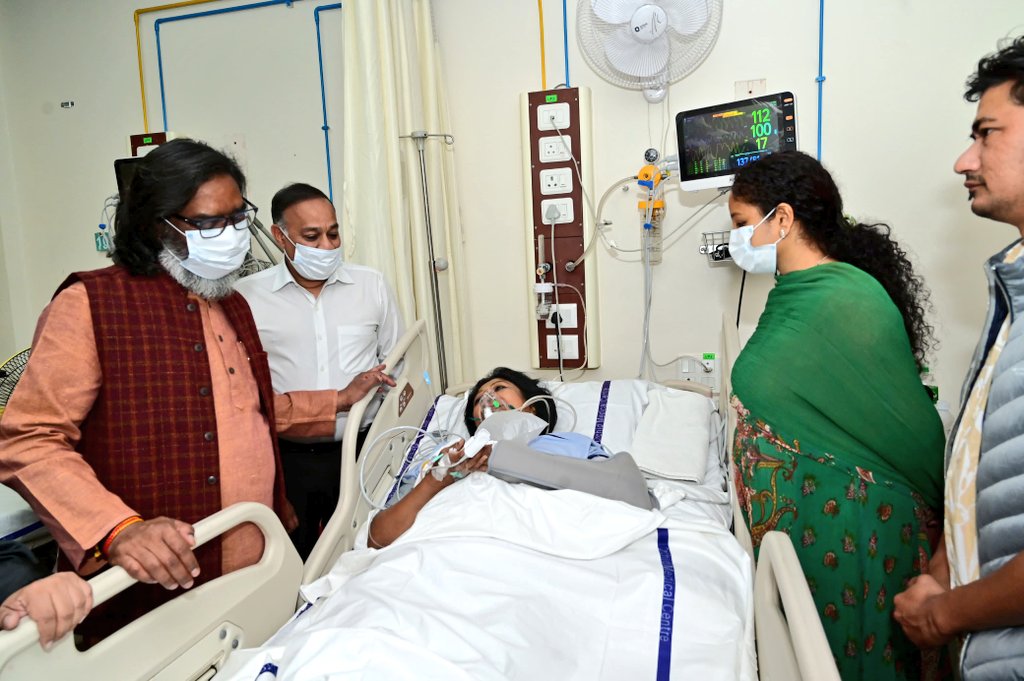 घायल सांसद महुआ माजी से मिले सीएम हेमंत सोरेन और केंद्रीय राज्यमंत्री संजय सेठ