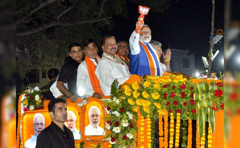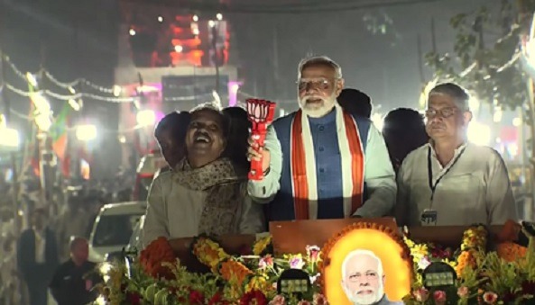 पीएम मोदी ने हाथ हिलाकर लोगों का अभिनंदन स्वीकार किया। वे अपने वाहन से आगे बढ़ रहे हैं और हर कोई प्रधानमंत्री की एक तस्वीर कैमरे में कैप्चर करने के लिए लालायित नजर आ रहा है। इस रोड शो को देखने के लिए बड़ी संख्या में महिलाएं और बच्चे सड़कों के किनारे खड़े हैं और उनका अभिनंदन कर रहे हैं।