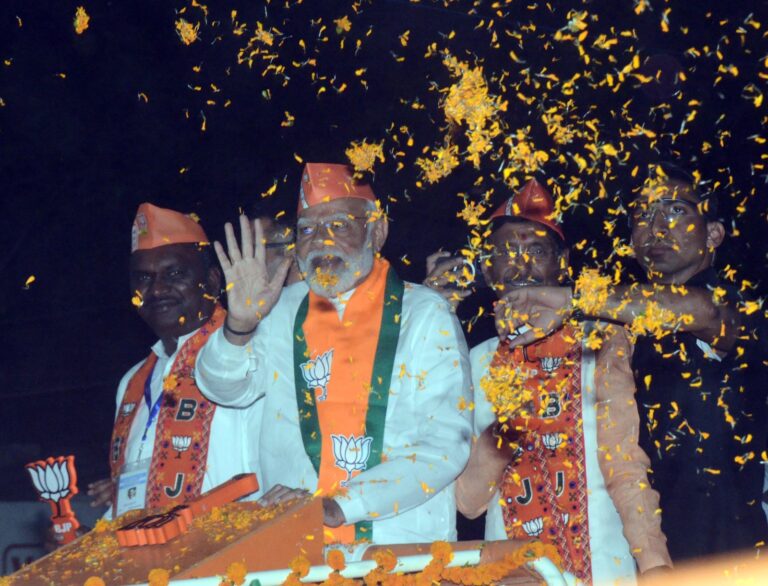रांची। प्रधानमंत्री नरेन्द्र मोदी शुक्रवार शाम बिरसा मुंडा एयरपोर्ट से निकलने के बाद उन्होंने बिरसा चौक पर भगवान बिरसा मुंडा की प्रतिमा पर माल्यार्पण किया। साथ ही प्रतिमा की परिक्रमा कर लोगों का अभिवादन किया। इसके बाद उनका काफिला आगे बढ़ गया। इस दौरान लोगों ने अबकी बार 400 पार के नारे लगाए। वहीं, खुली जिप से प्रधानमंत्री नरेन्द्र मोदी लोगों को नमस्कार करते नजर आये और हाथ में कमल का निशान लिए थे, जो लोगों को दिखाते हुए और मुस्कुराते हुए मतदान की अपील कर रहे थे।