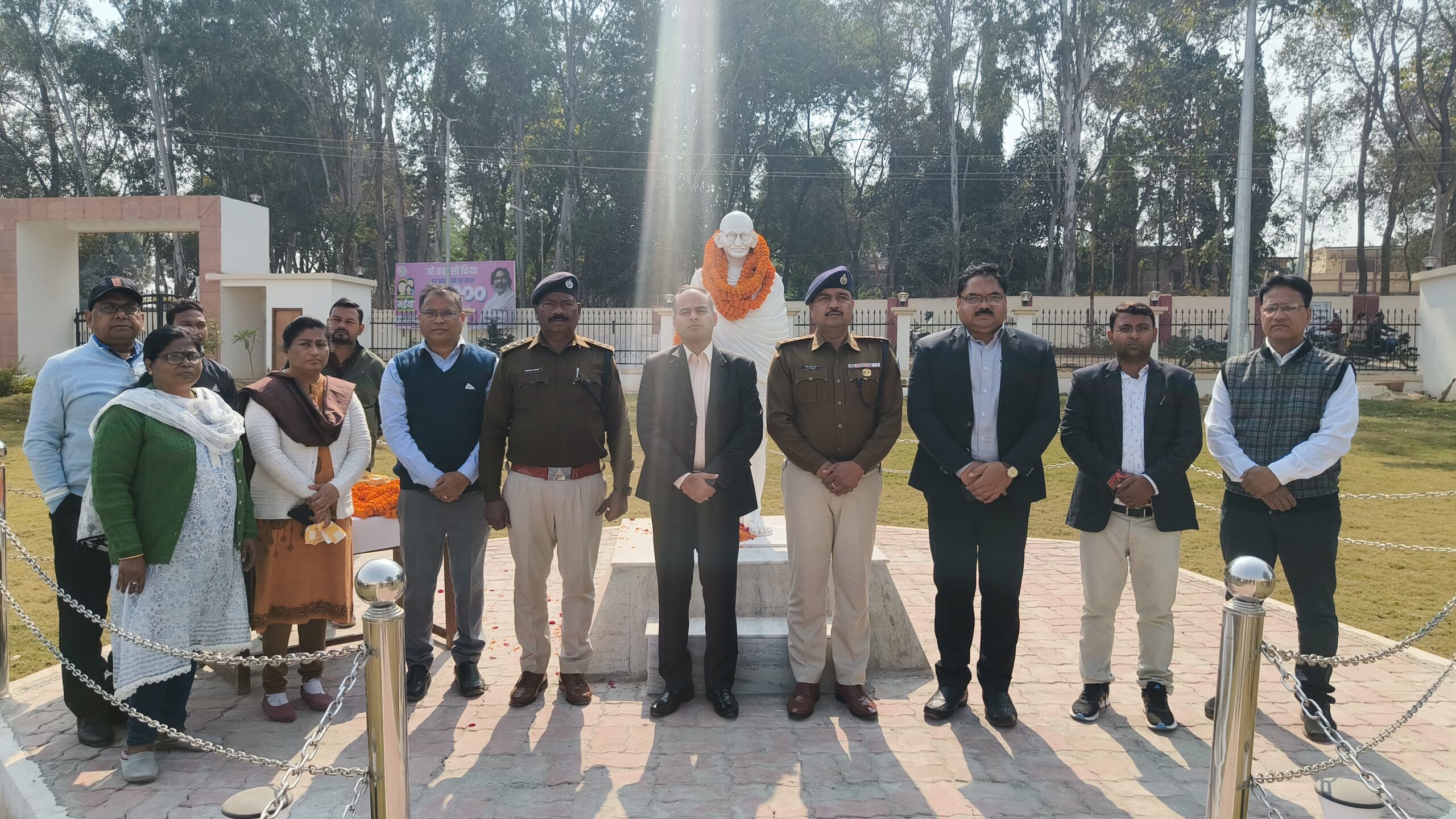 गुमला। महात्मा गांधी की पुण्य तिथि पर समाहरणालय परिसर गुमला चंदाली में उपायुक्त कर्ण सत्यार्थी एवं एसपी शंभू कुमार सिंह ने गांधी जी की आदमकद प्रतिमा माल्यर्पण किया। अधिकारियों एवं कर्मचारियों ने दो मिनट का मौन धारण कर शहीदों के प्रति अपनी श्रद्धा व्यक्त की तथा गांधी प्रतिमा पर माल्यार्पण किया।