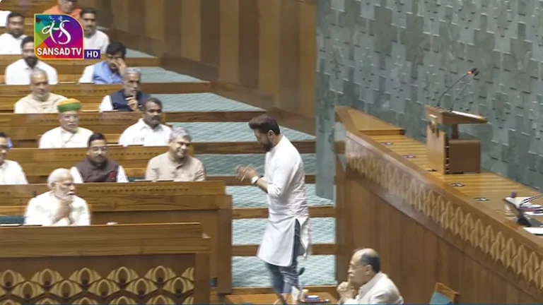 अठारहवीं लोकसभा के पहले सत्र में भी अलग अंदाज में नजर आए मोदी के हनुमान, नीली जींस, सफेद कुर्ता और माथे पर तिलक… शपथ लेकर प्रधानमंत्री को झुककर किया अभिवादन