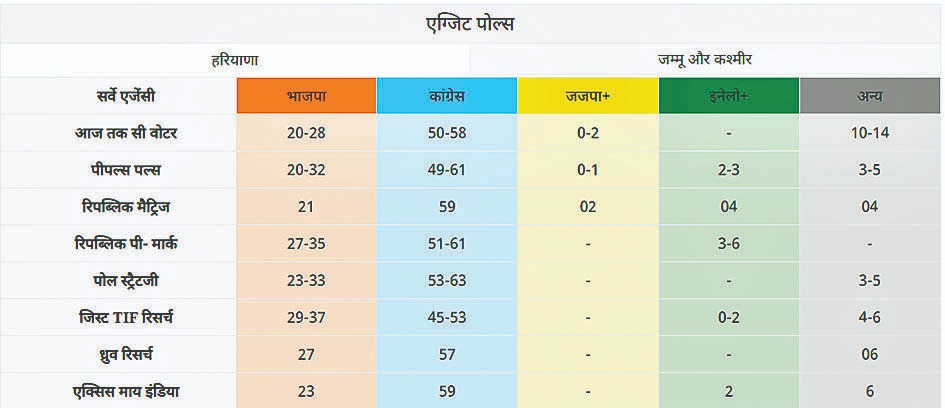Home » एग्जिट पोल:हरियाणा में कांग्रेस की वापसी, जम्मू-कश्मीर में किसी को बहुमत नहीं