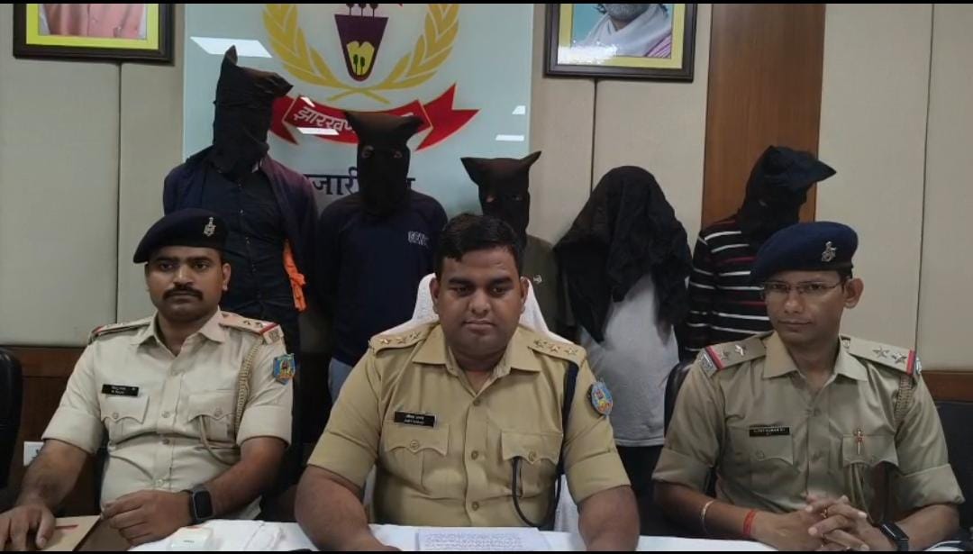 हजारीबाग। कोर्रा थाना क्षेत्र में लूट की योजना बना रहे पांच अपराधियों को पुलिस ने गिरफ्तार किया है। पकड़े गए अपराधियों के पास से हथियार, सोना-चांदी के गहने, मोबाइल फोन, वाहन सहित आपत्तिजनक सामग्री बरामद की गई है। इनमें से अधिकांश अपराधी पूर्व में कई संगीन मामलों में शामिल रहे हैं। अनुमंडल पुलिस पदाधिकारी सदर अमित आनंद ने रविवार को प्रेसवार्ता कर बताया कि,पुलिस अधीक्षक अंजनी अंजन को 18 अक्टूबर की शाम करीब 8 बजे गुप्त सूचना मिली कि कुछ अपराधी कनहरी हिल, फॉरेस्ट एरिया के पास डकैती की योजना बना रहे हैं।