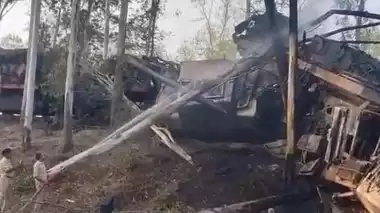 टक्कर के बाद मालगाड़ियों में लगी आग