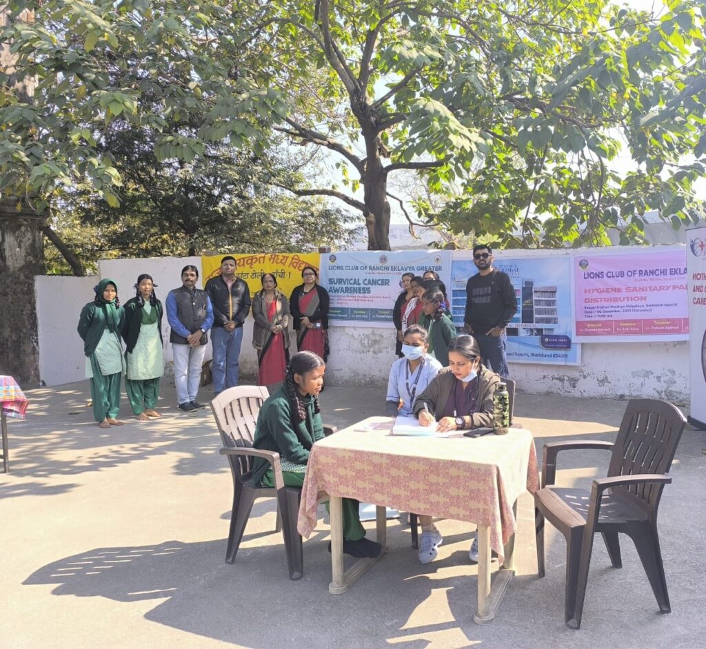 रांची। राजकीय मध्य विद्यालय में शनिवर् को सर्वाइकल कैंसर को लेकर जागरूकता व स्वास्थ्य जाँच शिविर लगाया गया। लायंस क्लब ऑफ़ रांची, एकलव्य ग्रेटर और सिनर्जी ग्लोबल हॉस्पिटल की ओर से आयोजित कार्यक्रम में 60 से ज़्यादा छात्राओं की स्वास्थ्य जाँच की गई। मौक़े पर महिला डॉक्टर ने बच्चियों को सर्वाइकल कैंसर के बारे में जागरूक किया।