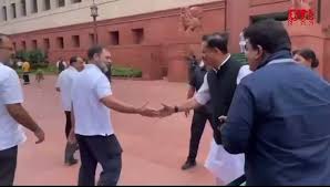 नई दिल्ली । भारतीय जनता पार्टी (BJP) के सारण से सांसद राजीव प्रताप रूडी कांस्टीट्यूशन क्लब ऑफ इंडिया का चुनाव जीतने के बाद पहली बार जब संसद पहुंचे तो लोकसभा में नेता प्रतिप्रक्ष राहुल गांधी ने उनका जोरदार स्वागत किया। जैसे ही संसद भवन में रूडी दिखे राहुल ने पत्रकारों से बात करना छोड़ बीच में ही रूडी की तरफ बढ़े। उन्होंने रूडी को हैलो-हैलो कहकर रोका।राहुल रूडी को देखते ही हैलो-हैलो कहते हुए आगे बढ़े। रूडी ने उन्हें देखकर हाथ बढ़ाया। इसके बाद राहुल ने मीडिया की तरफ मुखातिब होते हुए कहा कि ये बीजेपी के साथ दुर्लभ हाथ मिलाना है (Most Uncommon Handshakes)। इसके बाद राहुल गांधी ने हंसते हुए रूडी को बधाई भी दी। राहुल के इस बयान पर वहां मौजूद नेता भी हंसने लगे थे।