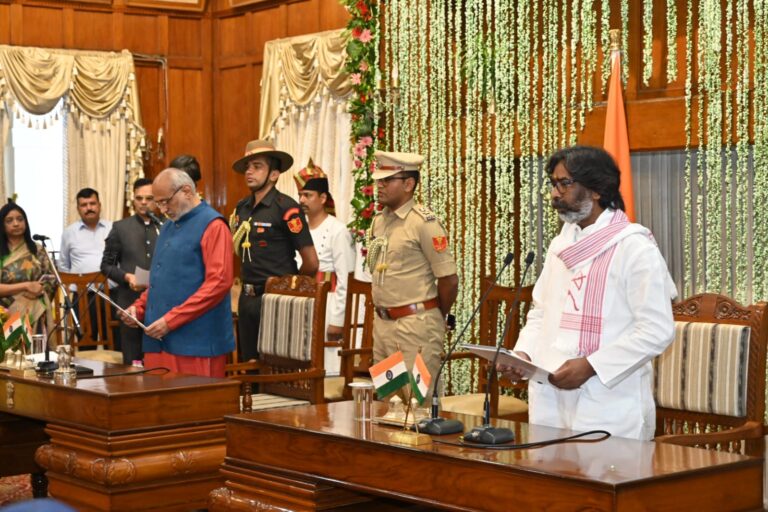 रांची। हेमंत सोरेन ने गुरुवार शाम 4.55 बजे झारखंड के सीएम के रूप में शपथ ले ली है। कुल 154 दिनों के बाद उन्होंने एक बार फिर यह दायित्व संभाला है। राजभवन में आयोजित एक सादे समारोह में राज्यपाल सीपी राधाकृष्णन ने उन्हें पद और गोपनीयता की शपथ दिलाई।
