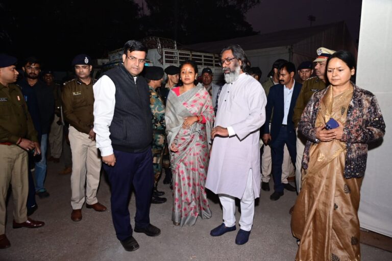 रांची। कार्यवाहक मुख्यमंत्री हेमंत सोरेन ने मोरहाबादी मैदान, रांची में 28 नवंबर को नई सरकार के शपथ ग्रहण समारोह को लेकर चल रही तैयारियों का बुधवार रात निरीक्षण किया। इस मौके पर उन्होंने समारोह स्थल में मंच निर्माण, साज सज्जा, विद्युत, ध्वनि तथा सुरक्षा व्यवस्था और अतिथियों के स्वागत-सत्कार एवं आगंतुकों के बैठने की व्यवस्था की जानकारी अधिकारियों से ली।