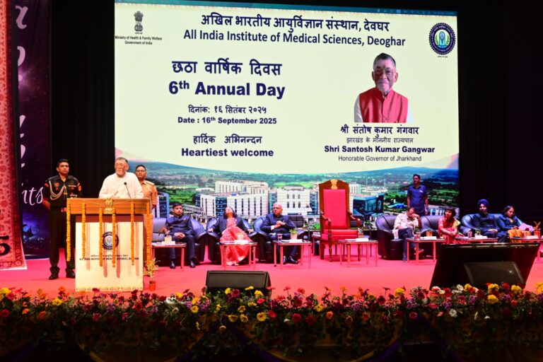 देवघर। राज्यपाल संतोष कुमार गंगवार ने कहा कि चिकित्सक का दायित्व केवल रोग का इलाज करना ही नहीं है बल्कि रोगी के मन में स्वस्थ होने की आशा और विश्वास जगाना भी है। एक चिकित्सक की अच्छी वाणी, उसका धैर्य और उसका स्नेह कभी-कभी मरीजों के लिए सबसे बड़ी औषधि सिद्ध हो जाते हैं। यही कारण है कि अस्पताल केवल इलाज का स्थान नहीं होता, बल्कि मानवता और करुणा का मंदिर भी होता है। राज्यपाल मंगलवार को एम्स देवघर के छठे वार्षिक दिवस समारोह को संबोधित कर रहे थे।