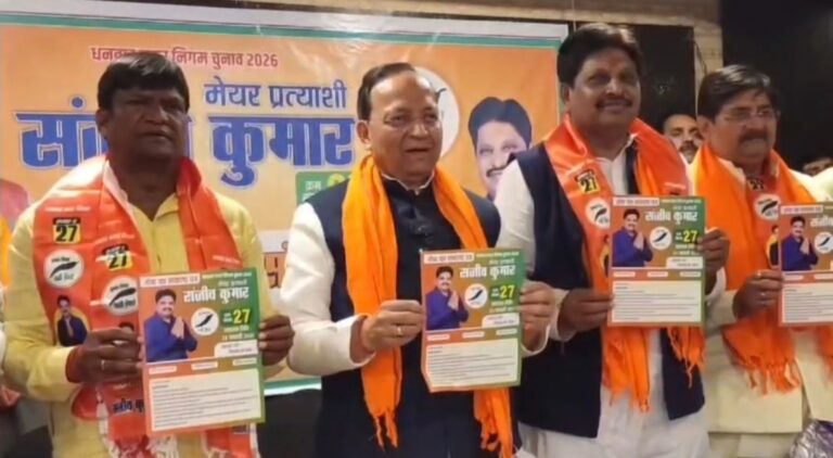 • धनबाद में भाजपा समर्थित मेयर प्रत्याशी संजीव कुमार ने जारी किया घोषणा पत्र,जीत का किया दावा
