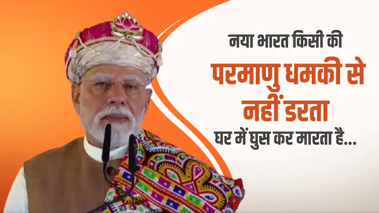 धार। प्रधानमंत्री नरेंद्र मोदी ने पाकिस्तान को एक बार फिर कड़ा संदेश दिया है। उन्होंने कहा कि ये नया भारत है, ये किसी की परमाणु धमकियों से डरता नहीं। ये नया भारत है, ये घर में घुसकर मारता है। प्रधानमंत्री मोदी मध्य प्रदेश के धार में आयोजित कार्यक्रम को संबोधित कर रहे थे।