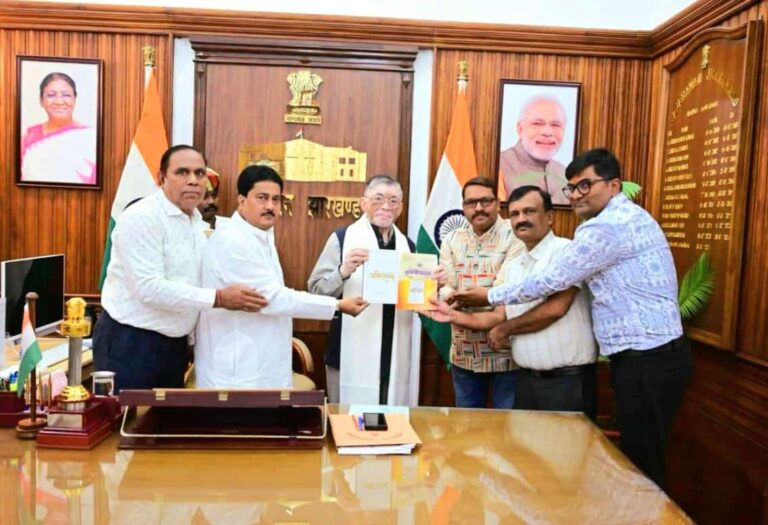 रांची। जैन धर्म के समता युवा संघ के अध्यक्ष राकेश कुमार जैन के अध्यक्षता में एक प्रतिनिधिमंडल ने राज्यपाल संतोष गंगवार को ज्ञापन सौंपा। साथ ही जैन धार्मिक के पूज्य आचार्य प्रवर 1008 श्री रामलाल के 50 वर्ष साधना और साधुत्व को समर्पित अभिरामम पुस्तक और स्मृति चिन्ह भी भेंट की। यह पुस्तक संघ और राष्ट्र हित में है। इस किताब में जैन धर्म के मूल सिद्धांत और महावीर के उपदेशों का विस्तृत वर्णन है, जो समाज में अहिंसा और करुणा के मूल्य को बढ़ावा देता है। राज्यपाल ने सभी मांगों पर गंभीरता से विचार करने का आश्वासन दिया।