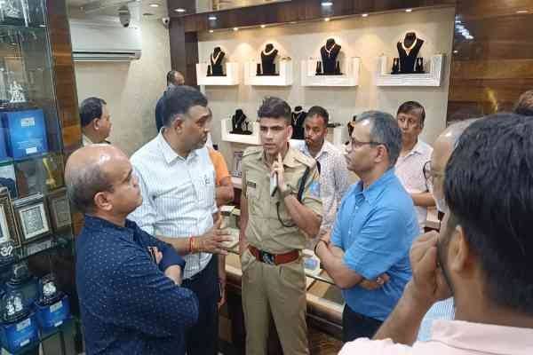 जमशेदपुर। जमशेदपुर में शुक्रवार को सोनारी एयरोड्रम के पास दोपहर 01:45 बजे बाइक सवार नकाबपोश लुटेरे एमबी ज्वेलर्स के शोरूम में हथियार के बल पर दो लाख नकदी और करीब 50 लाख रुपये के जेवर लूटकर फरार हो गए। सूचना पर सिंहभूम चैंबर आॅफ कॉमर्स के पदाधिकारी मौके पर पहुंचे और जानकारी ली।