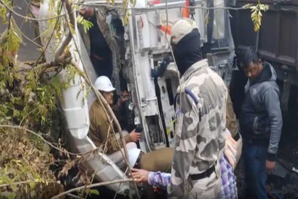 गोड्डा । झारखंड के गोड्डा में सोमवार रात में एक बड़ा हादसा हो गया। महागामा-ललमटिया मार्ग पर एक ट्रक रेलिंग तोड़ते हुए एनटीपीसी के एनजीआर रेलवे ट्रैक पर गिर गया और कोयले के रैक से जा टकराया। इस घटना में ट्रक चालक समेत दो लोग घायल हुए हैं। एनटीपीसी के अधिकारियों ने घटना की पुष्टि की। अधिकारियों के अनुसार, घटना गोड्डा के लालमटिया में रात करीब साढ़े 3 बजे हुई। सुबह 6 बजे एनटीपीसी बचाव दल को सूचना मिली थी। ट्रक (जेएच12एस 7078) सड़क से करीब 40 फीट नीचे एनटीपीसी के एनजीआर रेलवे ट्रैक पर गिर गया और वहां से गुजर रहे कोयले के रैक से टकरा गया। ट्रक नीचे गिरते हुए पलट गया और कोयले की रैक से टकराने के कारण उसका आगे का हिस्सा पूरी तरह क्षतिग्रस्त हो गया। इस घटना के कारण यह रेलखंड कई घंटों तक बाधित रहा।हादसे में चालक ट्रेन की बोगी के नीचे जा फंसे, जबकि सहयोगी वाहन के केबिन में ही दबा रह गया। घायलों की पहचान ड्राइवर लालू कुमार और सहकर्मी मनीष कुमार के रूप में हुई है। मनीष हादसे के तीन घंटे तक फंसा रहा।स्थानीय पुलिस की टीम भी हादसे की सूचना मिलने के बाद मौके पर पहुंची। बचाव दल ने जैसे-तैसे कर घायल मनीष को ट्रक के केबिन से बाहर निकाला। इसके बाद उसे नजदीकी अस्पताल में भर्ती कराया गया। एनटीपीसी बचाव दल के प्रमुख शुभाशीष बनर्जी ने उन्हें निकालने के अभियान का नेतृत्व किया।शुभाशीष बनर्जी ने समाचार एजेंसी आईएएनएस को बताया, “घटना के बारे में हमें सीनियर कमांड से जानकारी मिली है। जैसे ही हमें जानकारी मिली, हम तुरंत निकल पड़े और घटना वाली जगह पर पहुंचकर रेस्क्यू ऑपरेशन शुरू कर दिया गया। एक व्यक्ति को निकाला जा चुका है। एक चालक पहले ही निकल चुका था।”