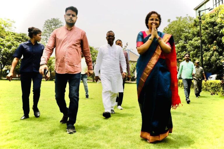 गिरिडीह : झारखंड के पूर्व मुख्यमंत्री हेमंत सोरेन की पत्नी कल्पना सोरेन गांडेय विधानसभा सीट पर उपचुनाव लड़ रहीं हैं। उपचुनाव के लिए सोमवार को जारी वोटिंग के बीच उन्होंने मतदान केंद्रों का दौरा किया। इस दौरान उन्होंने चुनावी मुद्दे पर कुछ नहीं कहा।