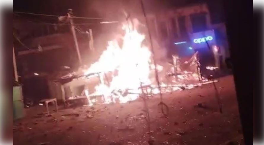 पथराव को रोकने के लिए मौके पर मौजूद पुलिस ने प्रयास किया, लेकिन स्थिति पूरी तरह से बेकाबू हो गई। देखते ही देखते हिंसा बढ़ी और आगजनी की घटना भी हुई, जिसमें कई दुकानों, बाइकों और चारपहिया वाहनों को आग के हवाले कर दिया गया।