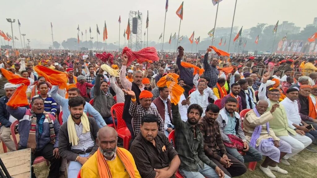 उत्साह, ऊर्जा और उम्मीदों से भरे दिन के बीच राज्य के नवनिर्वाचित एनडी सरकार के शपथ ग्रहण समारोह में लोगों का जोश देखने लायक था। मंच से बज रहे चुनावी लोकगीत जोड़ी मोदी अउर नीतीश जी के हिट हो गईल ने माहौल को और भी रंगीन बना दिया। धुन शुरू होते ही समारोह स्थल तालियों और नारों से गूंज उठा।