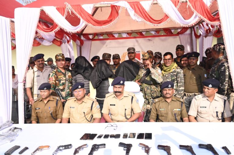 गिरफ्तार नक्सली के पास और उसकी निशानदेही पर नाइन एमएम का तीन पिस्टल, एक देशी कट्टा, नाइन एमएम का 15 जिन्दा गोली, .315 का एक गोली, एक हुंडई क्रेटा गाड़ी, विभिन्न कंपनियों का सात मोबाईल, डोंगल (राउटर)तीन, एम-16 एआई राईफल (अमेरिकन)एक , एसएलआर राईफल, .315 बोर की देशी निर्मीत राइफल दो, 7.62 एम.एम. का देशी पिस्टल एक, 7.65 एम.एम. का देशी पिस्टल तीन, देशी कट्टा एक, एम-16 एआई राईफल का मैगजीन-03, एसएलआर का मैगजीन एक, अन्य पिस्टल का मैगजीन दो, नाइन एमएम का जिन्दा गोली 4597 पीस, 5.5 एमएम का जिन्दा गोली 172 पीस, .315 एमएम का जिन्दा गोली 100 पीस, एम-16 का जिन्दा गोली 90 पीस, 7.62एमएम का जिन्दा गोली-20 राउण्ड, चितकबरा रंग का 01 मैगजीन पाउच सहित अन्य सामान बरामद किया गया है।
