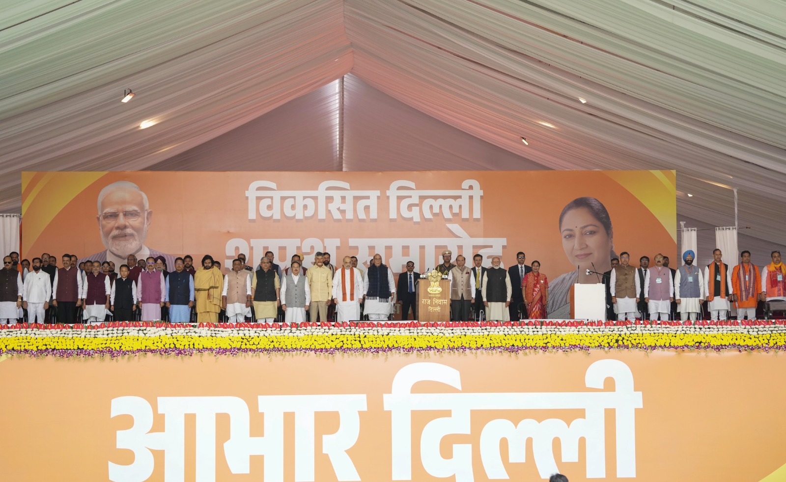 राजग नेताओं ने होटल में जाते और बाहर निकलते हुए दिल्ली में मुख्यमंत्री का पदभार संभालने वाली रेखा गुप्ता और अन्य मंत्रियों को बधाई दी। राजस्थान की उपमुख्यमंत्री दिया कुमारी ने कहा कि यह हम सबके लिए एक गर्व और खुशी का विषय है कि एक महिला मुख्यमंत्री बनी हैं।