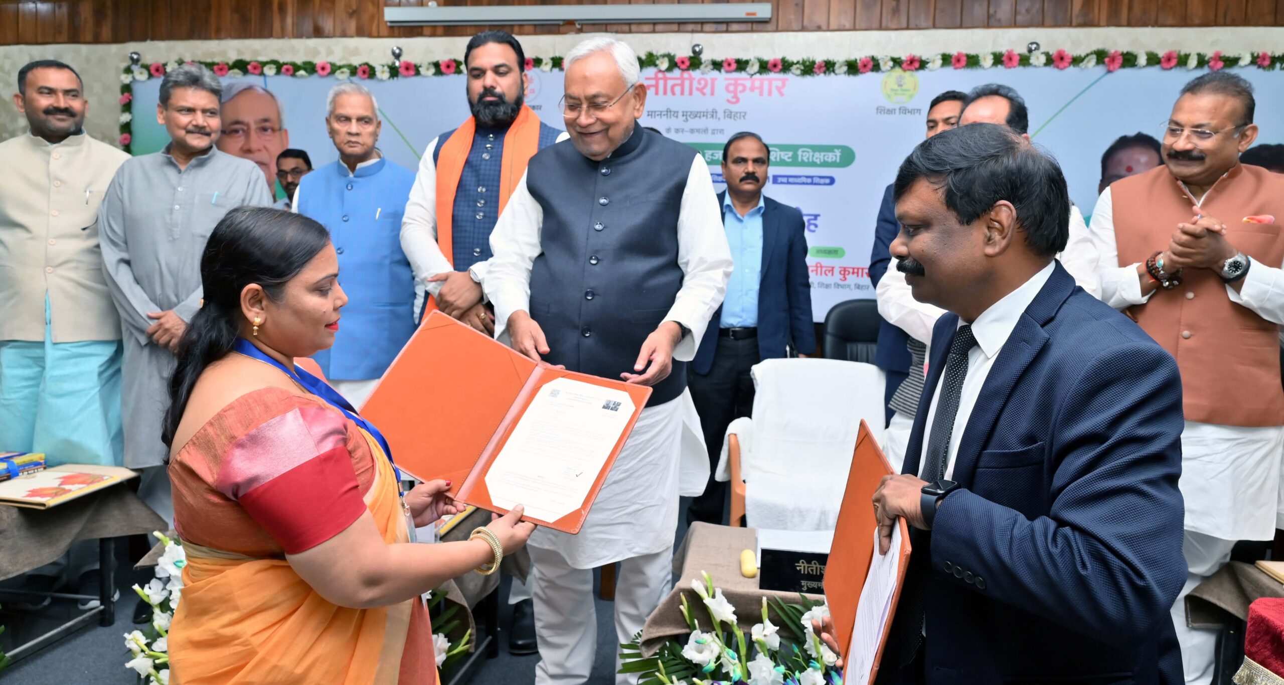 कार्यक्रम में दोनों उपमुख्यमंत्री सम्राट चौधरी एवं विजय कुमार सिन्हा, ऊर्जा सह योजना एवं विकास मंत्री बिजेन्द्र प्रसाद यादव, ग्रामीण कार्य मंत्री अशोक चौधरी, शिक्षा मंत्री सुनील कुमार, पर्यावरण, वन एवं जलवायु परिवर्तन मंत्री डॉ. सुनील कुमार, सूचना प्रावैधिकी मंत्री कृष्ण कुमार मंटू, मुख्यमंत्री के प्रधान सचिव दीपक कुमार, मुख्य सचिव अमृत लाल मीणा, शिक्षा विभाग के अपर मुख्य सचिव डॉ. एस. सिद्धार्थ, वित्त विभाग के प्रधान सचिव आनंद किशोर, मुख्यमंत्री के सचिव कुमार रवि, मुख्यमंत्री के विशेष कार्य पदाधिकारी गोपाल सिंह, शिक्षा विभाग के सचिव बैद्यनाथ यादव सहित अन्य वरीय अधिकारी एवं नवनियुक्त विशिष्ट शिक्षक उपस्थित थे।