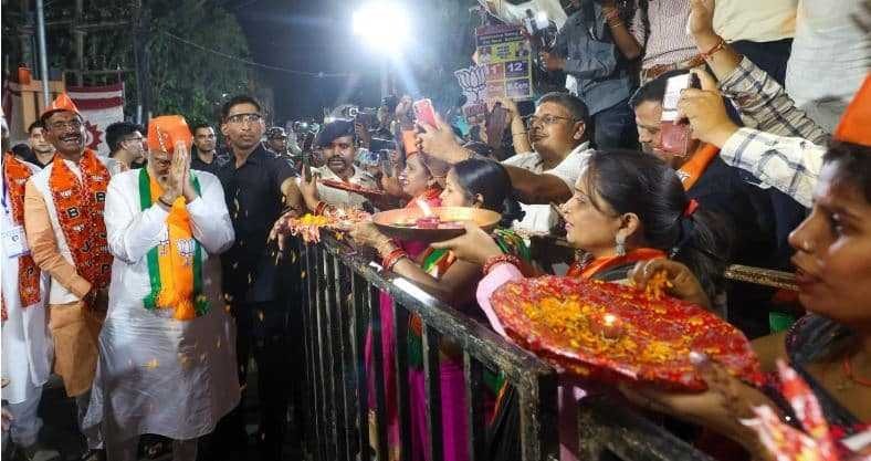 वे शाम से ही हाथों में आरती की थाली लिये खड़ी थीं। यह देख पीएम अभिभूत नजर आये। उन्होंने हाथ में कमल का फूल लेकर सभी का अभिवादन किया। इस दौरान उनके साथ रांची लोकसभा से प्रत्याशी संजय सेठ और अमर कुमार बाउरी भी थे।
