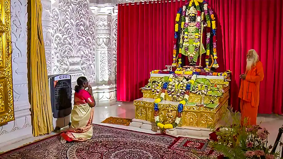 राष्ट्रपति मुर्मू ने आज शाम को नवनिर्मित राम मंदिर के गर्भगृह के अंदर पूजा-अर्चना और आरती की। राम मंदिर में दर्शन से पहले उन्होंने सरयू आरती में हिस्सा लिया और यहां हनुमानगढ़ी मंदिर में पूजा की।