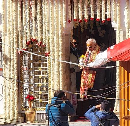 प्रधानमंत्री के सुबह हर्षिल हेलीपैड पर पहुंचने पर मुख्यमंत्री पुष्कर सिंह धामी ने स्वागत किया। प्रधानमंत्री 9ः30 बजे उत्तरकाशी जिले के ग्राम मुखवा स्थित गंगा मंदिर पहुंचे। यहां उनका स्वस्ति वाचन और पुष्पहार पहनाकर स्वागत किया। प्रधानमंत्री ने 20 मिनट तक गंगा मंदिर में श्रीसूक्त से अभिषेक एवं पूजन के बाद गंगा लहरी के साथ पूजा-अर्चना की और आरती कर देश की सुख-समृद्धि की कामना की।