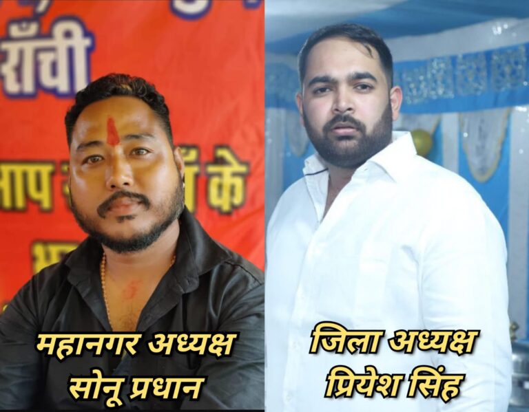 रांची। मां काली सेना की नई कमेटी का विस्तार शुक्रवार को किया गया। संगठन की ओर से महानगर और जिला स्तर पर नई जिम्मेदारियां सौंपी गई। इसके अनुसार सोनू प्रधान को महानगर अध्यक्ष और प्रियेश सिंह को जिला अध्यक्ष नियुक्त किया गया। यह जानकारी सेना प्रमुख भोलू सिंह ने शुक्रवार को प्रेस विज्ञप्ति जारी करते हुए दी है।