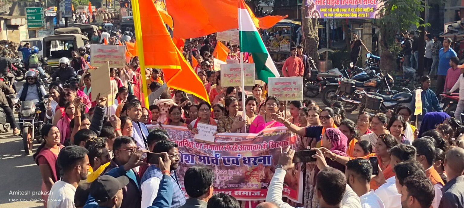 रामगढ़। बांग्लादेश में हिंदुओं पर हो रहे अत्याचार और इस्कॉन प्रमुख की गिरफ्तारी के विरोध में गुरुवार को रामगढ़ में बड़ा प्रदर्शन किया गया। बांग्लादेश के खिलाफ आक्रोश मार्च निकाला गया। विश्व हिंदू परिषद, दुर्गा वाहिनी , भाजपा युवा मोर्चा और विभिन्न हिंदू संगठनों के सदस्यों के अलावा आम नागरिक भी इस आक्रोश मार्च में शामिल हुए।