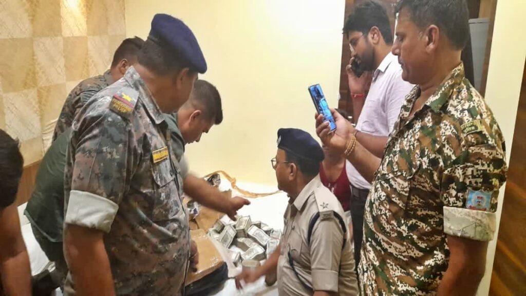 बतातें चलें कि झारखंड राज्य कर्मचारी चयन आयोग की संयुक्त स्नातक स्तरीय परीक्षा शनिवार और रविवार को होनी है। पुलिस मुख्यालय से निर्देश मिलने के बाद पलामू पुलिस ने सभी होटलों और गेस्ट हाउस में चेकिंग अभियान शुरू कर दिया है और छापेमारी कर रही है। इसी क्रम में पुलिस ने मेदिनीनगर टाउन थाना क्षेत्र के एक होटल में छापेमारी कर एक व्यक्ति के पास से 90 लाख रुपये नकद बरामद किए हैं। सारे पैसे 500-500 के नोट में हैं और नोटों के करीब 100 बंडल मिले हैं।