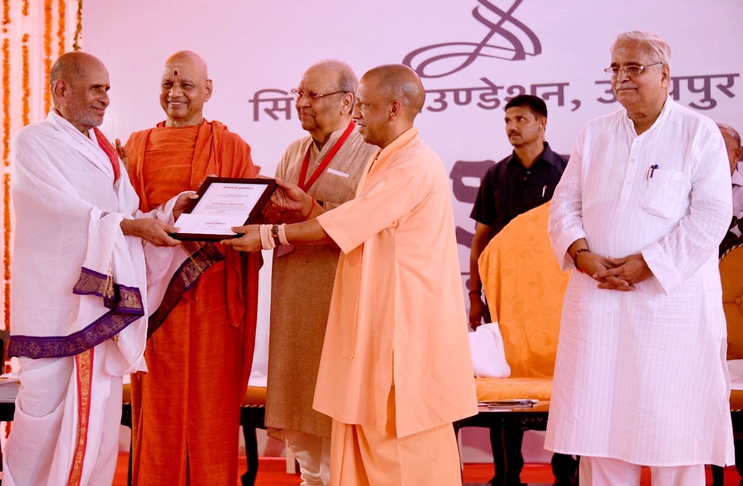 कार्यक्रम में मुख्यमंत्री योगी के साथ राष्ट्रीय स्वयंसेवक संघ पूर्व सर कार्यवाह भैया जी जोशी, कृषि मंत्री सूर्य प्रताप शाही, श्रीराम जन्मभूमि तीर्थ क्षेत्र ट्रस्ट के महामंत्री चंपत राय, आध्यात्मिक संत आइया जी, सिंघल फाउंडेशन के अध्यक्ष सलिल सिंघल, न्यासी संजय सिंघल, निर्णायक समिति के सदस्य एवं अयोध्या के कई संत मौजूद थे।