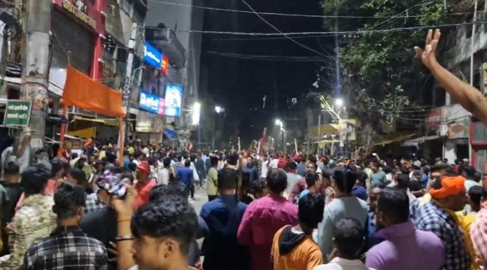 हजारीबाग।शहर में दूसरे मंगला जुलूस के दौरान पथराव और तोड़फोड़ की सूचना मिल रही है। बताया जा रहा है कि यह घटना तब घटी जब जुलूस जामा मस्जिद चौक अग्रवाल हैंडलूम के समीप मेन रोड पहुंचा। वहीं घटना की सूचना मिलने पर मौके पर एसपी अरविंद कुमार सिंह, सदर एसडीपीओ अमित आनंद, मुख्यालय डीएसपी अमित कुमार, सदर थाना प्रभारी सुभाष सिंह, बड़ा बाजार थाना प्रभारी बिट्टू रजक समेत भारी संख्या में पुलिस पहुंची। वहीं स्थिति को नियंत्रित करने के लिए पुलिस ने एयर फायरिंग भी की।