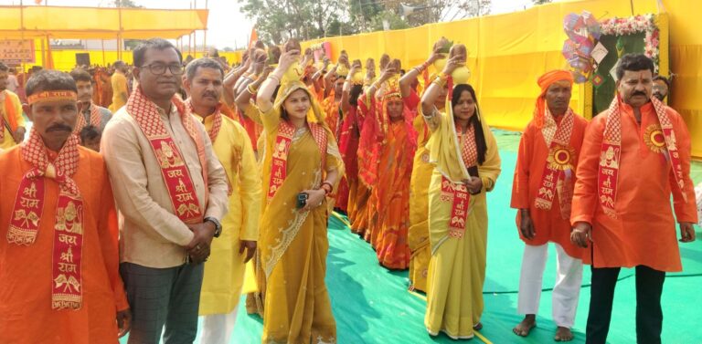 रांची। फुरहुरा टोली में श्रीश्री 1008 हनुमान आंजनेय मंदिर की प्राण प्रतिष्ठा व महायज्ञ को लेकर बुधवार को आसपास गांव की हजारों महिलाओं ने कलश यात्रा निकाली। कलश यात्रा मंदिर परिसर से फुरहुरा होते हुए विभिन्न गांव होते हुए जुमार नदी पर पहुंची। जहां पंडित मिथिलेश पांडेय ने विधि-विधान व वैदिक मंत्रोच्चार के साथ कलश में जल भरवाया। जिसके बाद एचएच-20 से बीआईटी चौक होते हुए यज्ञ स्थल पहुंचे।
