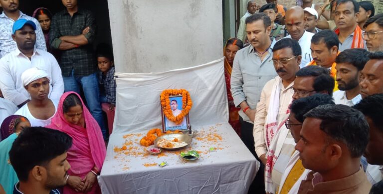 रांची। आजसू पार्टी के अध्यक्ष सुदेश महतो मंगलवार को पार्टी के नेता भूपल साव के श्राद्धकर्म में शामिल होने के लिए हजारीबाग जिले के केरेडारी स्थित बेंगवरी गांव पहुंचे और पार्टी नेता को श्रद्धांजलि अर्पित की। उल्लेखनीय है कि पिछले दिनों आजसू पार्टी के रांची के रातु प्रखंड के उपाध्यक्ष भूपल साव की पंडरा में नृशंस हत्या कर दी गई थी।