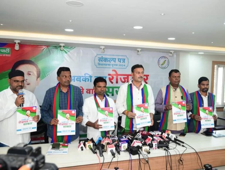 सुदेश कुमार महतो हरमू स्थित केंद्रीय कार्यालय में आयोजित प्रेस वार्ता में दौरान झारखंड विधानसभा चुनाव के लिए पार्टी के संकल्प पत्र के लोकार्पण के दौरान कही। प्रेस वार्ता में पार्टी के केंद्रीय वरीय उपाध्यक्ष सह गिरिडीह सांसद चंद्र प्रकाश चौधरी, प्रधान महासचिव राम चन्द्र सहिस, महासचिव लंबोदर महतो, मुख्य प्रवक्ता देव शरण भगत, संगठन सचिव एस अली मुख्य रूप से उपस्थित रहे।