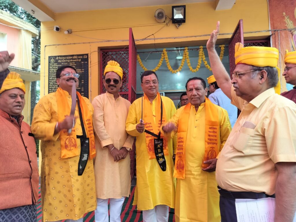 राँची। चित्रगुप्त पूजा के मौके पर अखिल भारतीय कायस्थ महासभा ( एबीकेएम ) की ओर से सम्मान समारोह का आयोजन किया गया। जिसमें शहर भर के तकरीबन 24 पूजा प्रबंधकों को सम्मानित किया गया। मौके पर महासभा के प्रदेश अधयक्ष डॉ सी बी सहाय ने कहा कि कलम थामने वाले हाथों में तलवार सौंपा जाना दोगुनी शक्ति का परिचायक है। उन्होंने बताया कि जिस प्रकार हम कलम से अपनी शक्ति का प्रदर्शन करते है, उसी प्रकार आत्मरक्षा के लिए भी हमेशा तत्पर रहना होगा। इस अवसर पर महासभा के महासभा के महामंत्री सुशील कुमार लाल ने भी चित्रांशों को भी उनकी शक्तियाँ याद दिलाते हुए समाज के हर तबके के लोगों को गले लगाने की बात कही।