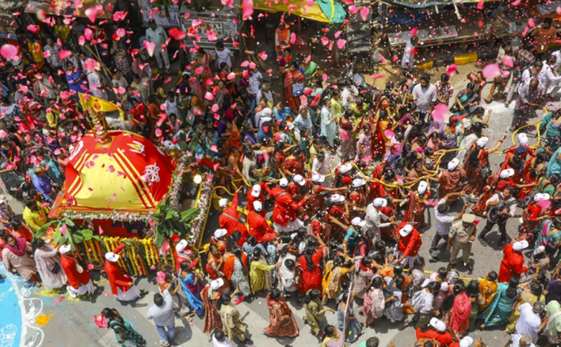 पहांडी से पहले मंदिर के गर्भगृह से मुख्य देवताओं के बाहर आने से पहले ‘मंगला आरती’ और ‘मैलम’ जैसे कई पारंपरिक अनुष्ठान आयोजित किए गए। निर्धारित कार्यक्रम के अनुसार, पहांडी के बाद अपराह्न साढ़े तीन बजे राजा गजपति दिव्यसिंह देब द्वारा ‘छेरापहंरा’ (रथों की सफाई) रस्म को संपन्न किया जाएगा, जिसके बाद अपराह्न 4 बजे रथों को खींचा जाएगा। इस बीच, भगवान जगन्नाथ की वार्षिक रथयात्रा के दर्शन के लिए लाखों श्रद्धालु शुक्रवार को पुरी पहुंचे।