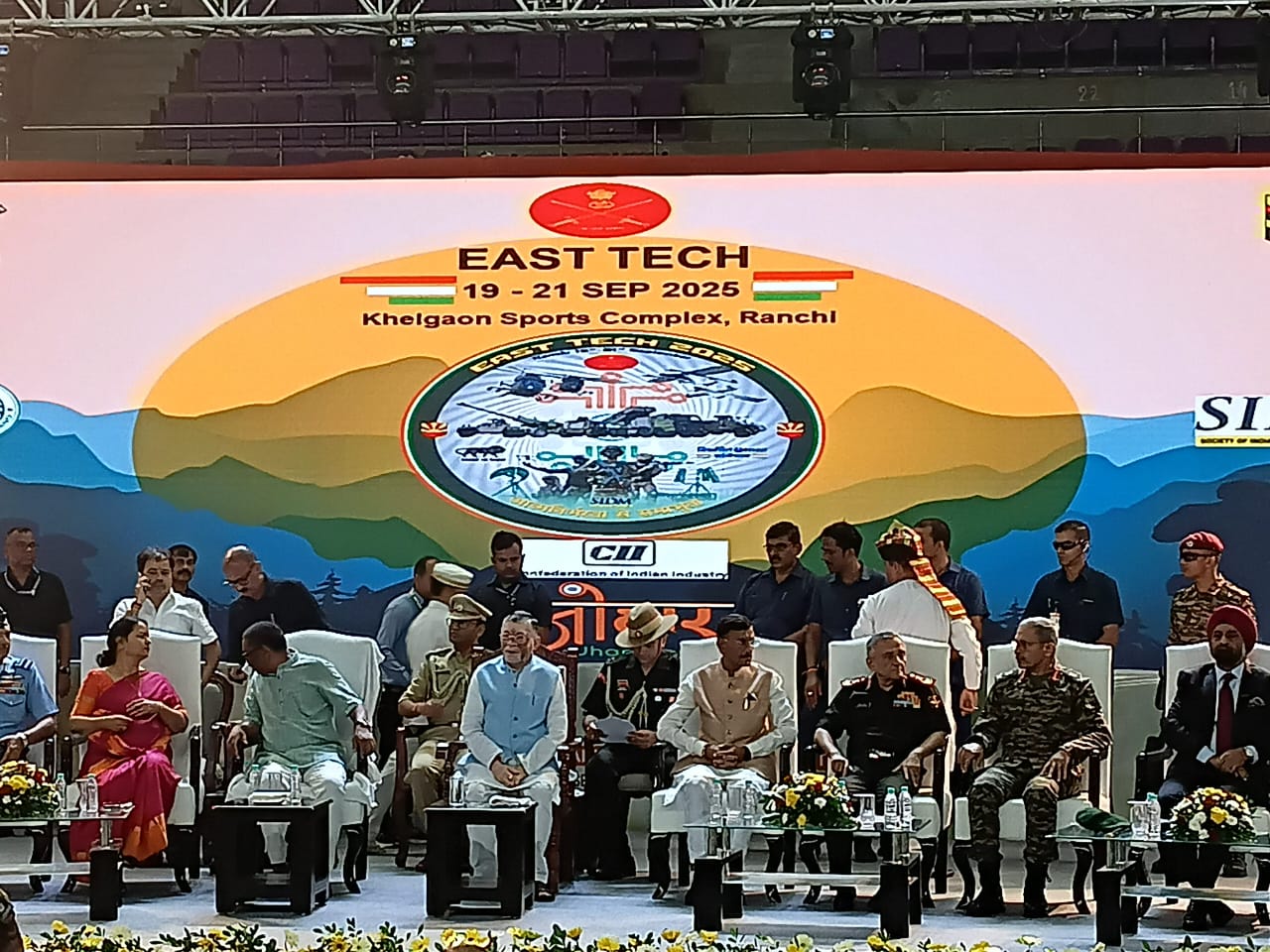 रांची। झारखंड की राजधानी रांची के खेलगांव स्थित टाना भगत इंडोर स्टेडियम में शुक्रवार को तीन दिवसीय ईस्ट टेक सिम्पोजियम 2025 (डिफेंस एक्सपो) का भव्य शुभारंभ हुआ। राज्यपाल संतोष गंगवार, मुख्यमंत्री हेमंत सोरेन, चीफ आॅफ डिफेंस स्टाफ (सीडीएस) जनरल अनिल चौहान, केंद्रीय रक्षा राज्य मंत्री संजय सेठ, मुख्य सचिव अलका तिवारी सहित कई विशिष्ट अतिथियों ने दीप प्रज्वलित कर इसका उद्घाटन किया। राज्यपाल संतोष कुमार गंगवार ने कहा कि ईस्ट टेक सिम्पोजियम 2025 (डिफेंस एक्सपो) ऐतिहासिक कदम है। उन्होंने डिफेंस एक्सपो के लिए केंद्रीय रक्षा राज्य मंत्री संजय सेठ को बधाई दी।