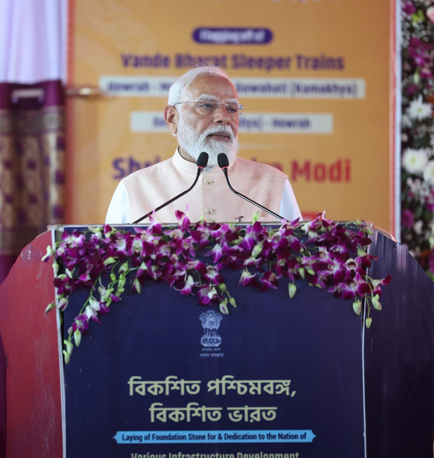 मालदा । प्रधानमंत्री नरेन्द्र मोदी ने शनिवार को तृणमूल कांग्रेस पर पश्चिम बंगाल को लूटने का आरोप लगाते हुए कहा कि भारतीय जनता पार्टी (भाजपा) की सरकार बनने के बाद ही राज्य में ‘रुके हुए’ विकास कार्य फिर शुरू हो सकते हैं। मोदी ने एक जनसभा को संबोधित करते हुए कहा कि बंगाल के चारों ओर ‘सुशासन’ की सरकार है। उन्होंने कहा कि ओडिशा, त्रिपुरा, असम और बिहार में भी भाजपा सरकार है। अब बंगाल में भाजपा सरकार आनी चाहिए। प्रधानमंत्री ने हावड़ा-गुवाहाटी के बीच चलने वाली देश की पहली वंदे भारत स्लीपर ट्रेन को हरी झंडी दिखाने के बाद एक जनसभा में कहा, “ पश्चिम बंगाल का तेज़ विकास भारतीय जनता पार्टी की प्राथमिकता है। यह खुशी की बात है कि देश की पहली वंदे भारत स्लीपर ट्रेन जहां से शुरू हो रही है, वह बंगाल है।” उन्होंने कहा कि अब बंगाल में सुशासन की बारी है। श्री मोदी ने जनसभा में ‘पालटा नो दोरकार, बीजेपी सरकार’ के नारे भी लगवाये।