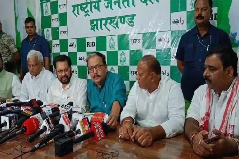 मनोज झा ने कहा कि 2019 में चुनाव हो रहा था तब राष्ट्रीय अध्यक्ष रांची में थे। उस समय भाजपा को हटाने के उद्देश्य से सात सीट पर ही हामी भरी। इस बार के चुनाव में भी इसी तरह से दबाव बनाया जा रहा है। एकतरफा फैसला लिया जा रहा है। राजद के नेताओं ने कभी भी झुकना स्वीकार नहीं किया है। वे जेल जाना मुनासिब समझते हैं लेकिन भाजपा के वाशिंग मशीन में धुलना स्वीकार नहीं किया। राजद शुरू से भाजपा के खिलाफ लड़ता रहा है। इस दौरान मंत्री सत्यानंद भोक्ता भी मौजूद थे।