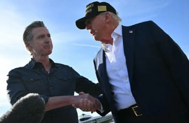 सीबीएस न्यूज की खबर के अनुसार, ट्रंप ने लॉस एंजिल्स अंतरराष्ट्रीय हवाई अड्डे पर टरमैक के पास इंतजार कर रहे पत्रकारों को संबोधित करने से पहले गवर्नर न्यूसम से संक्षेप में बात की। ट्रंप ने न्यूसम को हर तरह की मदद देने का भरोसा दिया। उन्होंने गर्मजोशी से स्वागत के लिए न्यूसम की प्रशंसा भी की। गवर्नर न्यूसम ने कहा कि आग प्रभावित क्षेत्र में भारी तबाही हुई है। इसकी भरपाई बिना सरकारी के मदद के संभव नहीं है। ट्रंप ने कहा कि हर तरह की संघीय सहायता उपलब्ध कराई जाएगी। संघीय सरकार पूरी तरह साथ में खड़ी है।