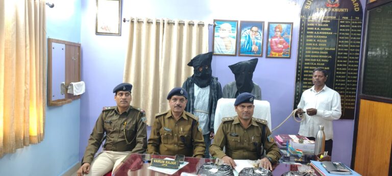 गिरफ्तार आरोपितों में अड़की थानांतर्गत हेंदेहस्सा गांव निवासी जोहन नाग (22) और कुडुंबदा गांव निवासी अल्बर्ट कंडीर शामिल हैं। इनके पास से पुलिस ने दो बाइक एक स्कूटी और पांच मोबाइल फोन भी बरामद किये हैं। यह जानकारी खूंटी एसडीपीओ वरुण रजक ने शनिवार सुबह कार्यालय कक्ष में आयोजित प्रेस कॉन्फ्रेंस में दी।