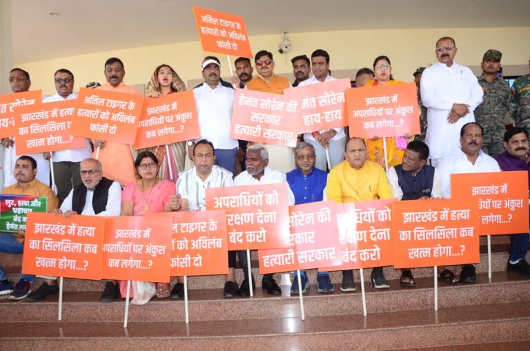 रांची । रांची में भाजपा नेता और जिला परिषद के पूर्व सदस्य अनिल महतो टाइगर की हत्या की घटना पर गुरुवार को झारखंड विधानसभा में जोरदार हंगामा हुआ।